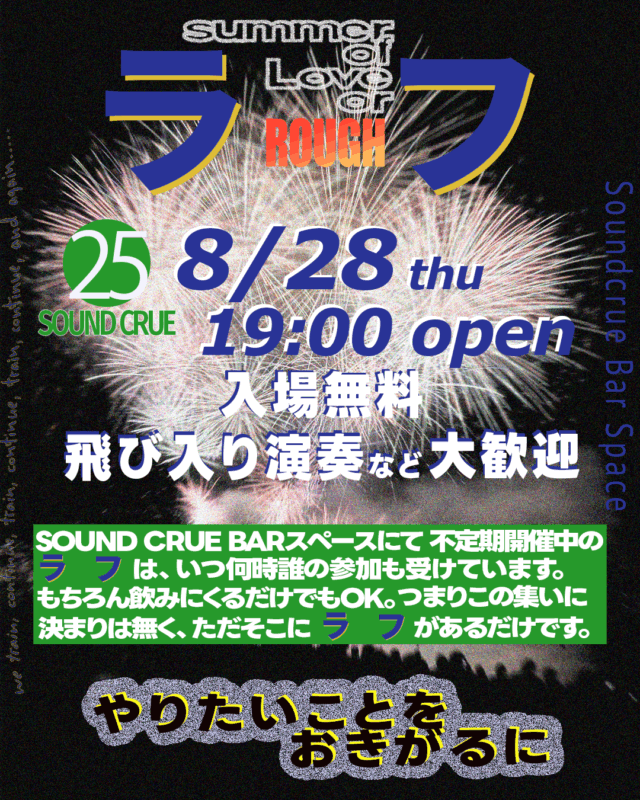 誰が何時に歌うかも、誰が何曲歌うかも決めず、 その場の雰囲気やノリでラフに行う催しです。 平日夜のお酒のお供に、アコースティックライブをお楽しみください。